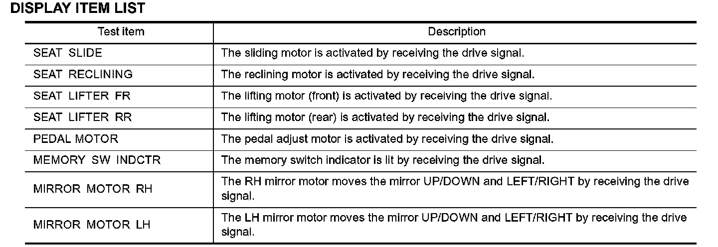 NOTE: If active test is performed, reset seat memory and automatic drive positioner seat memory after performing work.