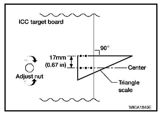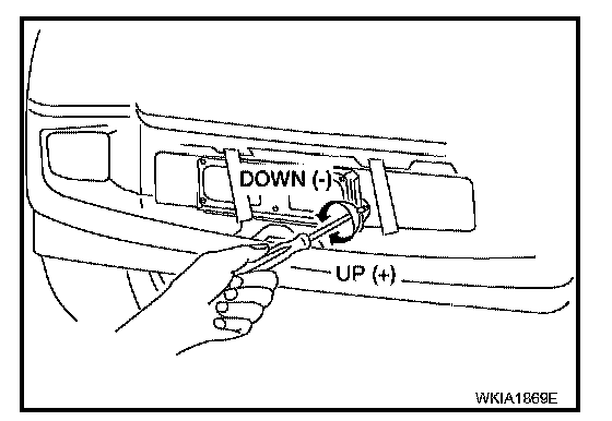 CAUTION: Turn the screw slowly. The value on the CONSULT-II is slower than the actual movement of the ICC sensor. Wait 2 seconds between each adjustment. Also, during adjustment work, do not block the ICC sensor lens with your hand or body. In that case, there are times when aiming cannot be conducted correctly.