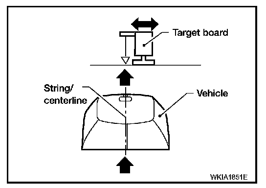1. Suspend a string with weights on each end over the centerline of the vehicle. The string should lay over the center of the front and back bumpers. Mark these center points on the ground at each weight.