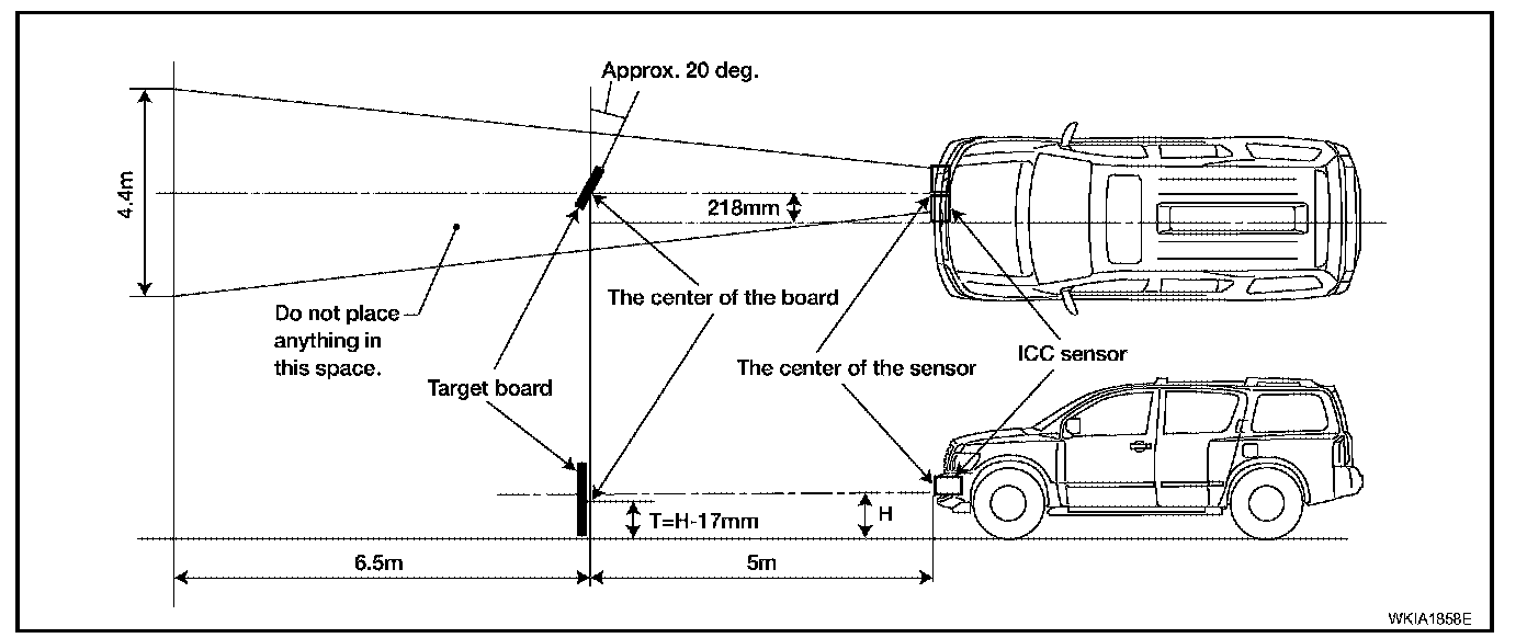 - The laser beam aiming adjustment must be performed every time the ICC sensor is removed, installed or has been moved as a result of a collision.