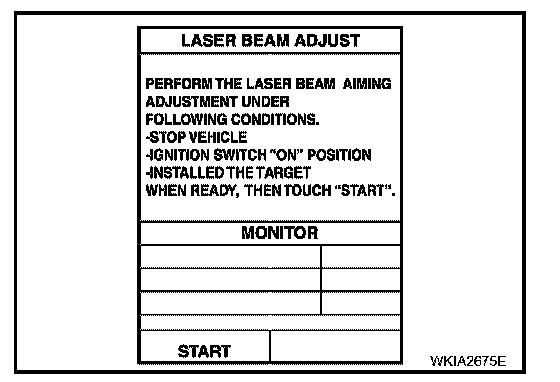 CAUTION: Complete all the procedures once "LASER BEAM ADJUST" mode is entered in CONSULT-II. When the procedure is discontinued, the ICC system is inoperable.