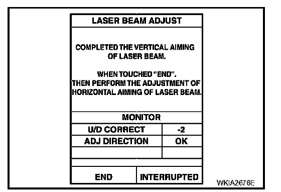 When "COMPLETED THE VERTICAL AIMING OF LASER BEAM" appears on screen, touch "END".