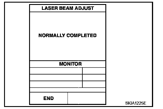 - Complete all necessary steps for laser beam adjustment until the CONSULT-II indicates "COMPLETED". If the procedure does not complete, the ICC system is inoperable.