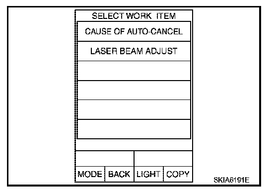 2. Touch "CAUSE OF AUTO-CANCEL" on "SELECT WORK ITEM" screen.