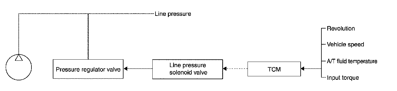 ^ In order to obtain the most appropriate line pressure characteristic to meet the current driving state, the TCM controls the line pressure solenoid current value and thus controls the line pressure.