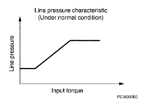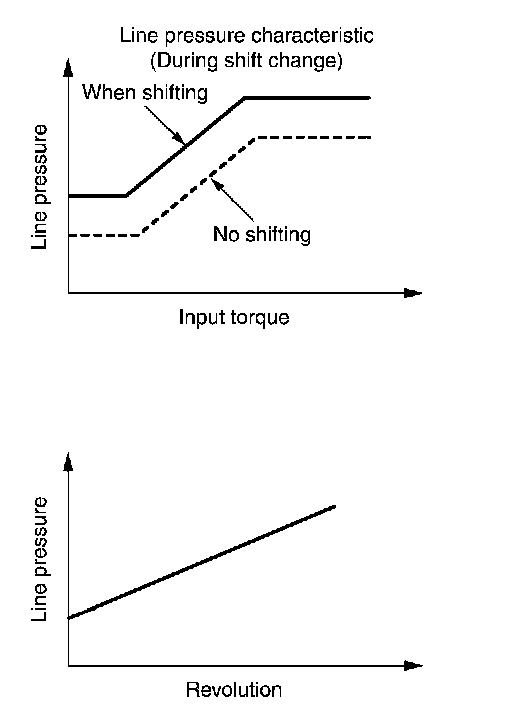 LINE PRESSURE CONTROL IS BASED ON THE TCM LINE PRESSURE CHARACTERISTIC PATTERN