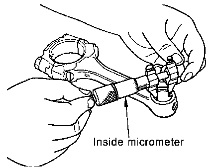 Measure inside diameter of connecting rod bearing. (Oil clearance) = (Inside diameter of connecting rod bearing) - (Crankshaft pin diameter)