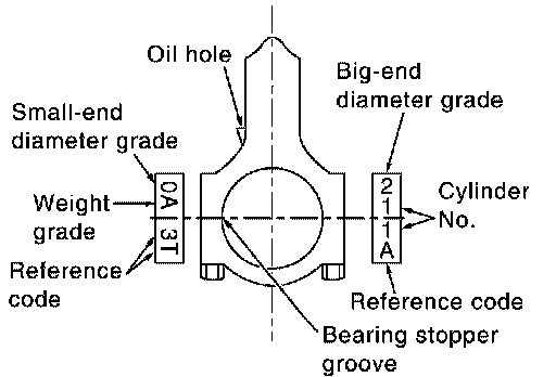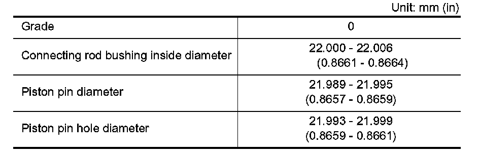 NOTE: The connecting rod small end grade and piston pin hole (piston pinches) grade are provided only for the parts installed at the plant. For service parts, no grades can be selected (only 0 grade is available).