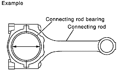 ^ Install the connecting rod cap without the connecting rod bearing installed. After tightening the connecting rod bolt to the specified torque, measure the connecting rod large end inside diameter. Refer to "ASSEMBLY".