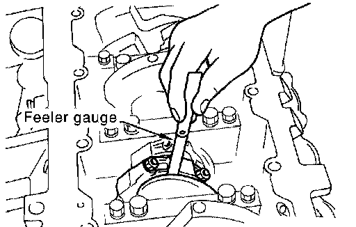 CRANKSHAFT END PLAY^ Move the crankshaft fully forward and backward and measure the clearance between the thrust bearings and crankshaft arm using suitable tool.
