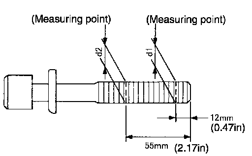 ^ Cylinder head bolts are tightened by plastic zone tightening method. Whenever the size difference between d1 and d2 exceeds the limit, replace the bolt with a new one.