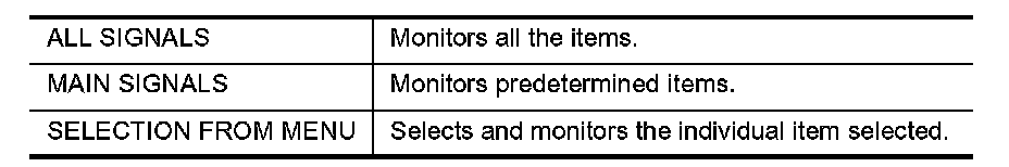 3. Touch "ALL SIGNALS", "MAIN SIGNALS" or "SELECTION FROM MENU" on the "SELECT MONITOR ITEM" screen.