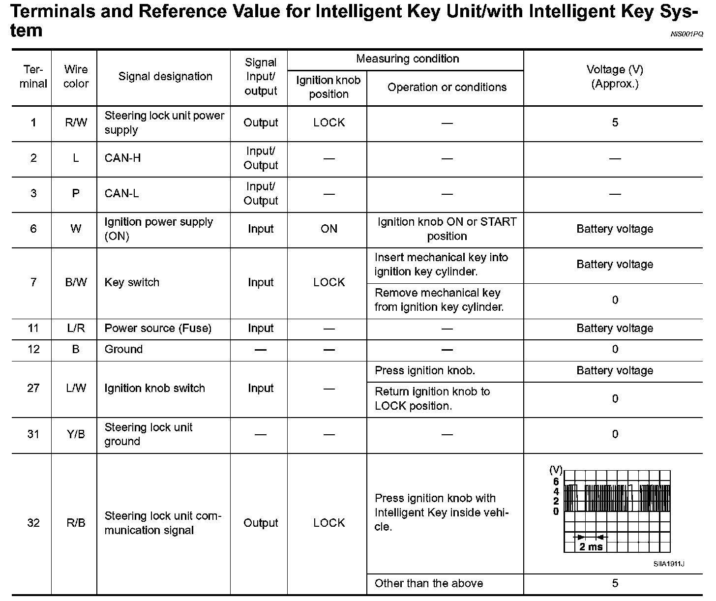 Terminals And Reference Value For Intelligent Key Unit/with Intelligent Key System: