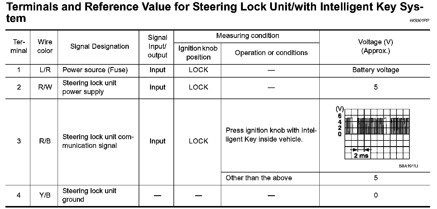 Terminals And Reference Value For Steering Lock Unit/with Intelligent Key System: