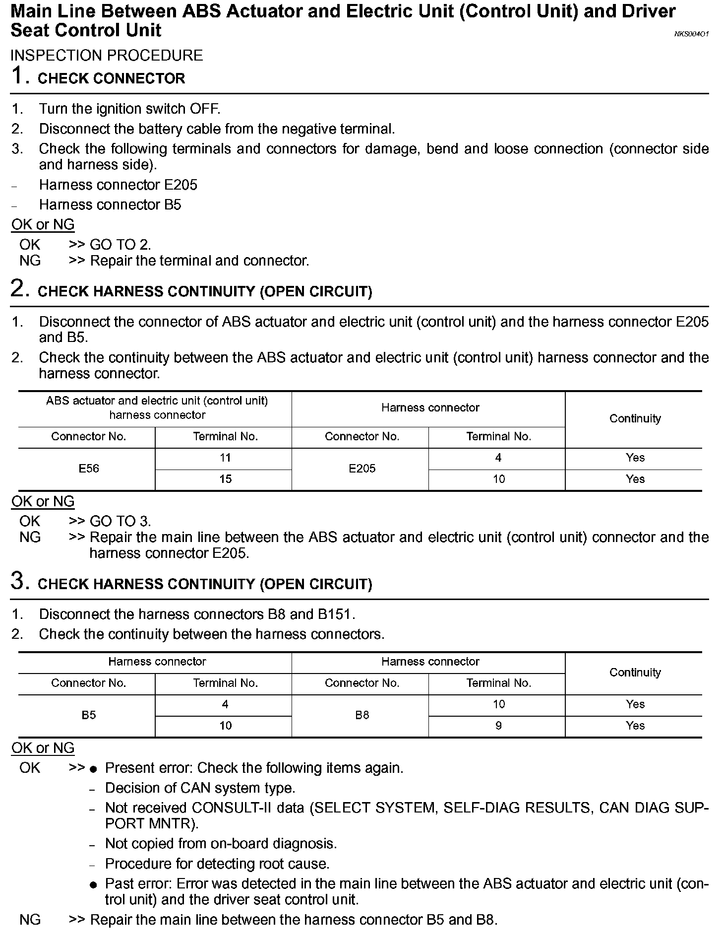 Main Line Between ABS Actuator and Electric Unit (Control Unit) and Driver Seat Control Unit