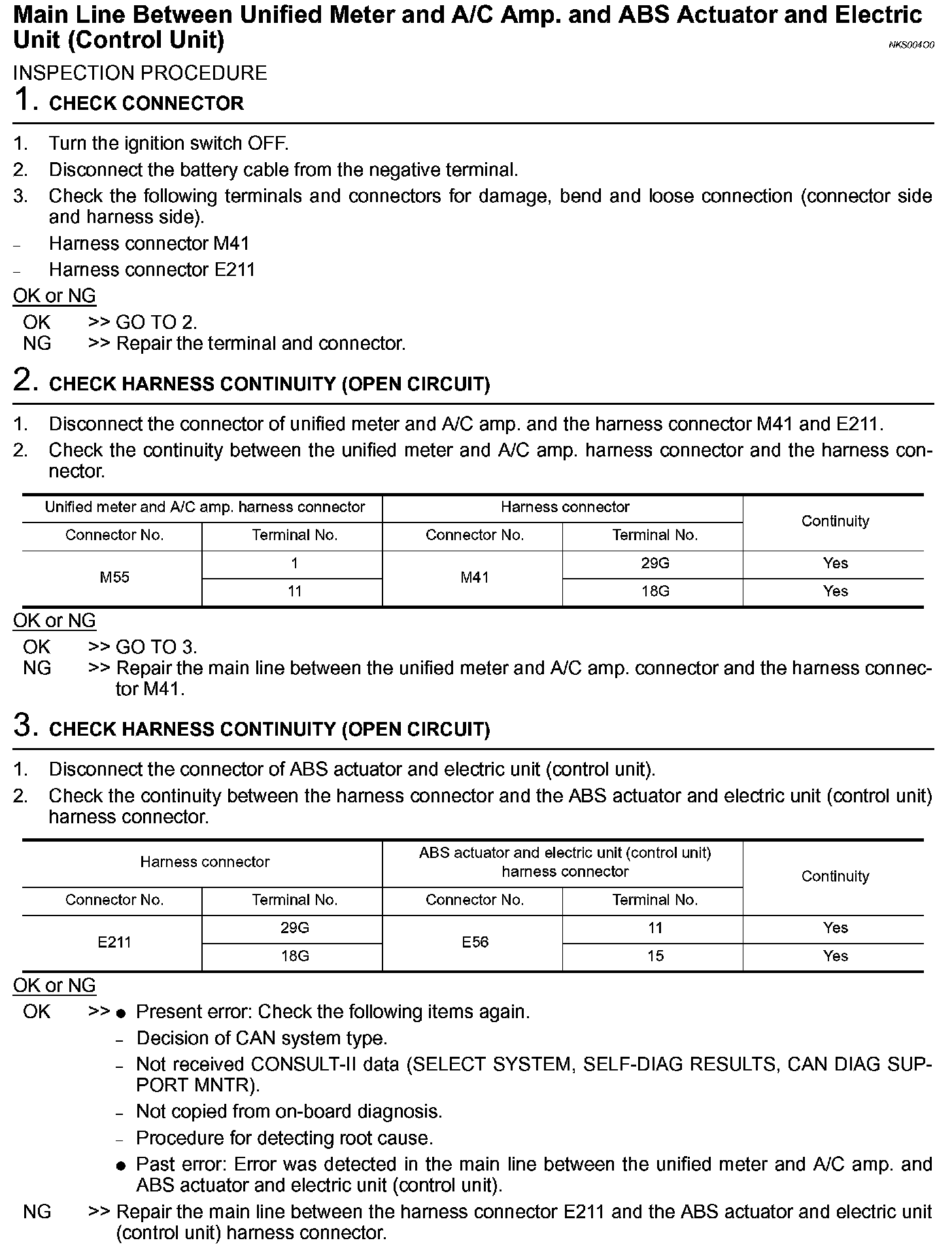 Main Line Between Unified Meter and A/C Amp. and ABS Actuator and Electric Unit (Control Unit)
