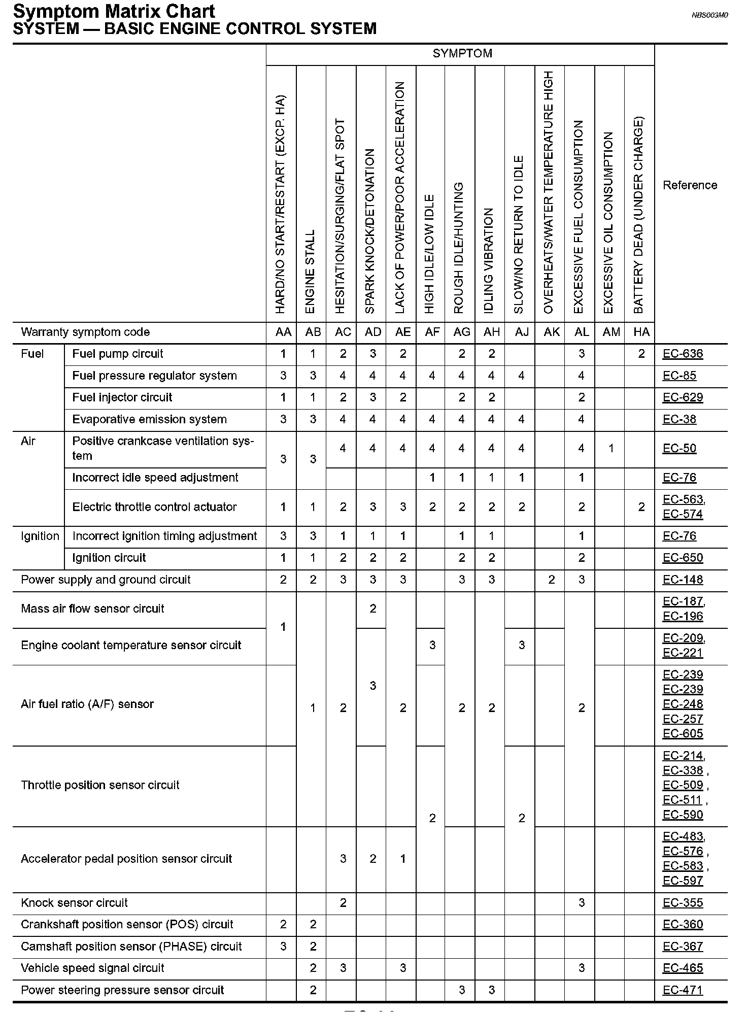 Symptom Matrix Chart (Part 1):
