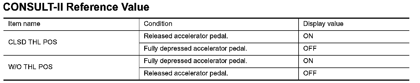 CLOSED THROTTLE POSITION AND WIDE OPEN THROTTLE POSITION CIRCUITCONSULT-II Reference Value: