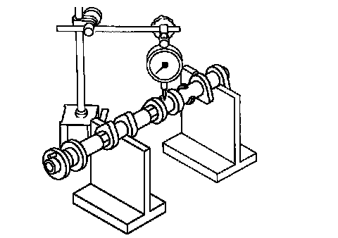 3. Turn camshaft to one direction with hands, and measure the camshaft runout on a dial indicator. (Total indicator reading)