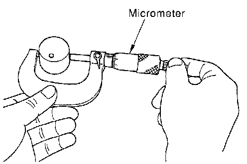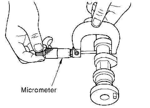 ^ Measure the outer diameter of camshaft journal with a micrometer.