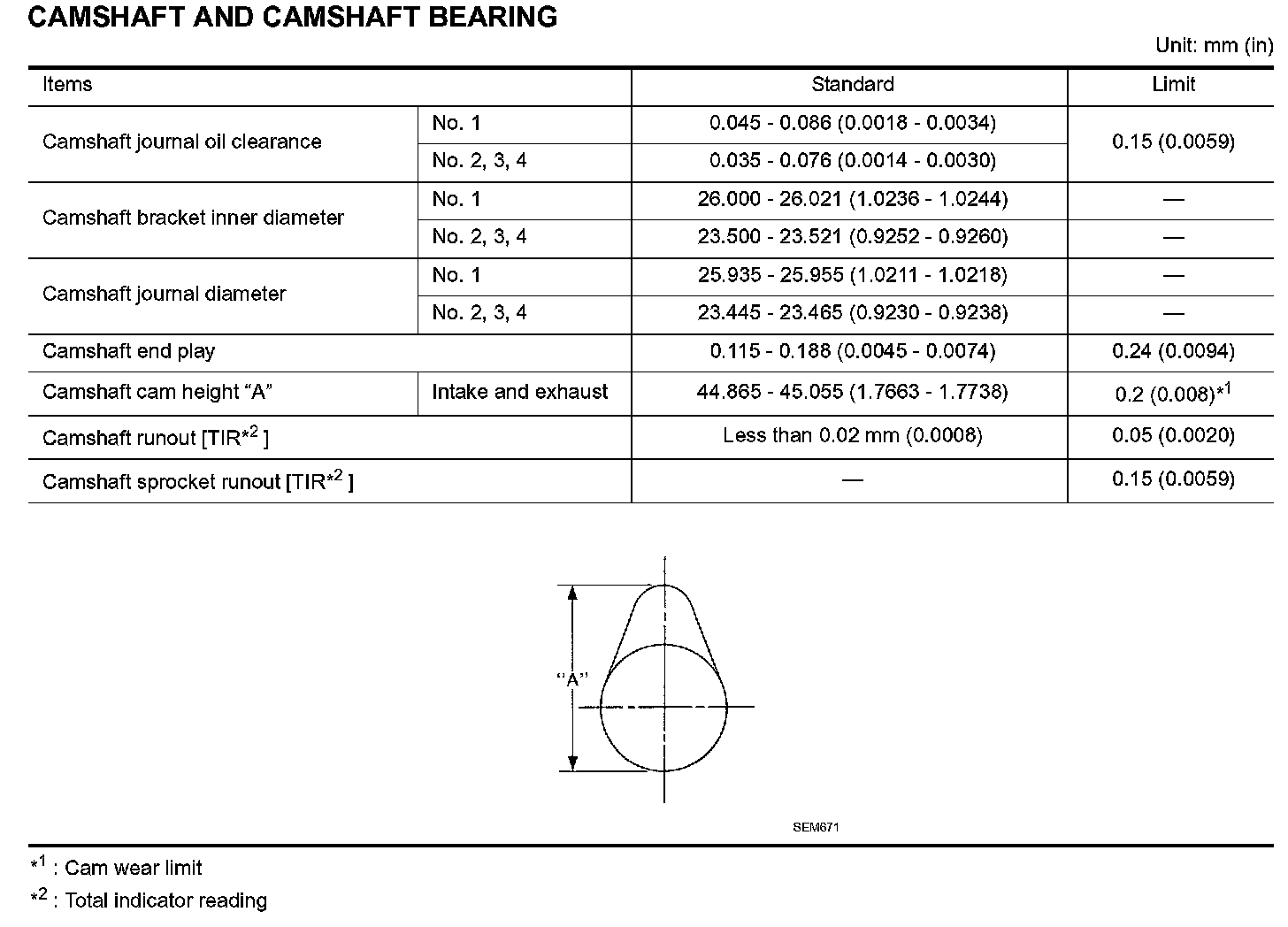 ^ If the calculated value exceeds the limit, replace either or both camshaft and cylinder head.