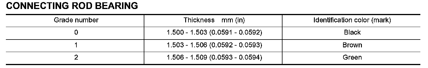 ^ If the calculated value exceeds the limit, select proper connecting rod bearing according to connecting rod big end diameter and crankshaft pin journal diameter to obtain the specified bearing oil clearance.