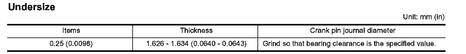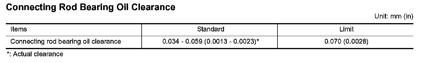 Standard: 0.034 - 0.059 mm (0.0013 - 0.0023 inch) (actual clearance)