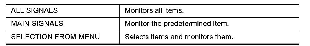 2. Touch "ALL SIGNALS", "MAIN SIGNALS" or "SELECTION FROM MENU" on "SELECT MONITOR ITEM" screen.