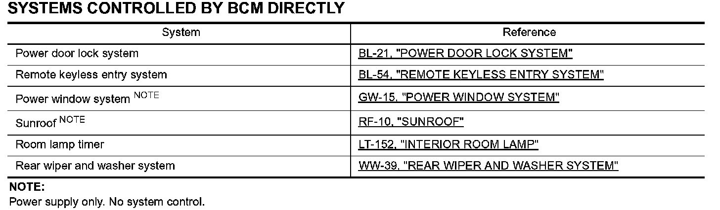 Systems Controlled By BCM Directly