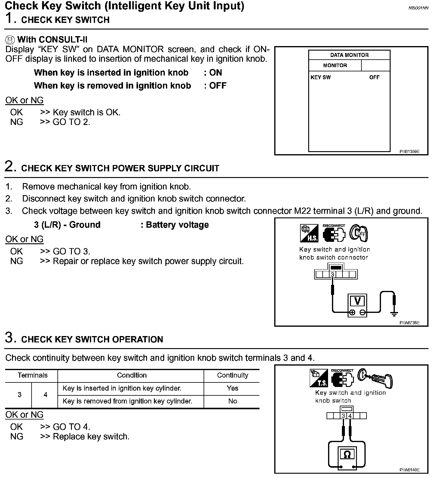 Check Key Switch (Intelligent Key Unit Input) (Steps 1 - 3):