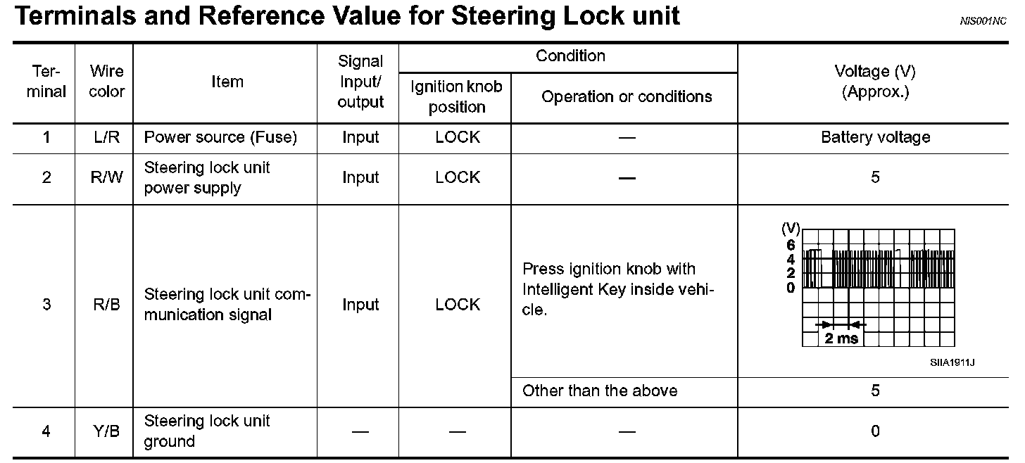 Terminals And Reference Value For Steering Lock Unit: