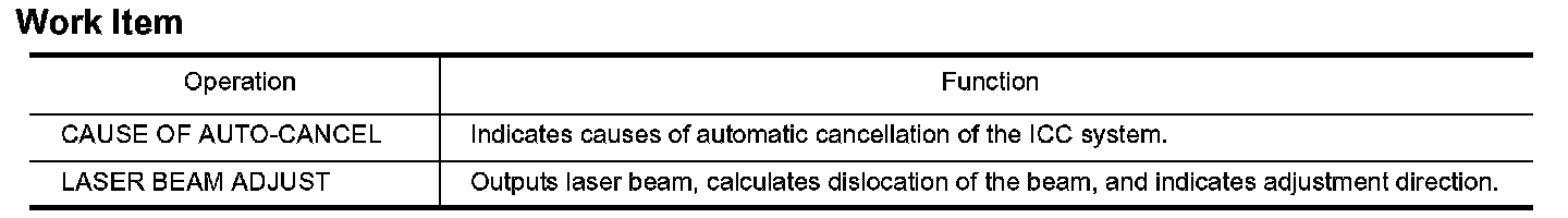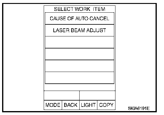 2. Touch "CAUSE OF AUTO-CANCEL" on the "SELECT WORK ITEM" screen.
