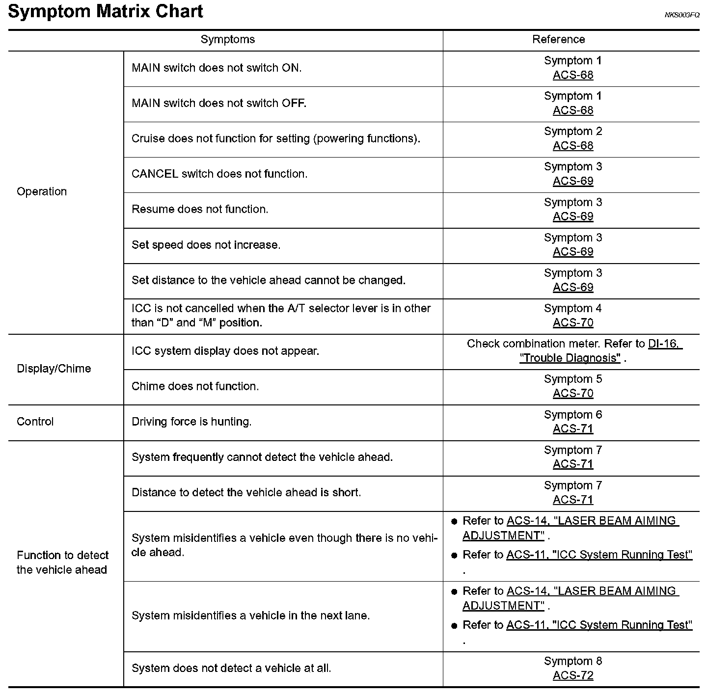 Symptom Matrix Chart: