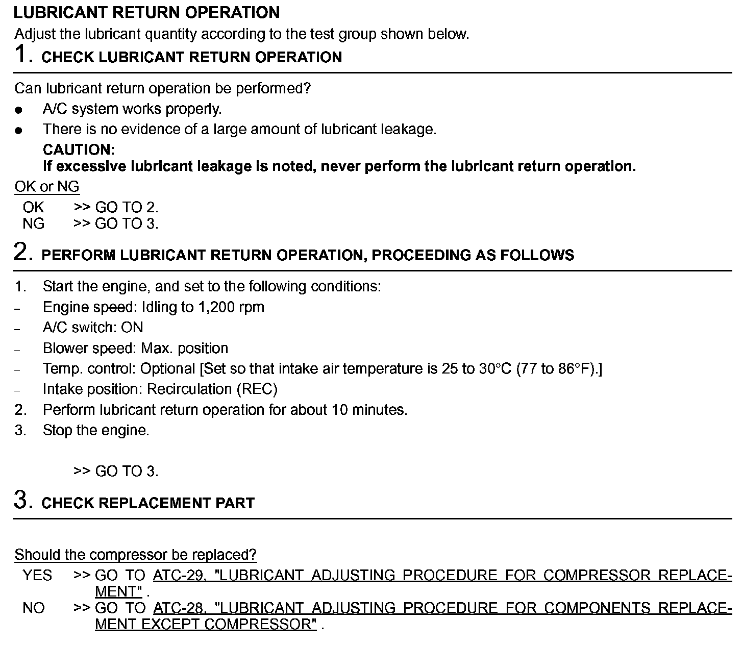 LUBRICANT ADJUSTING PROCEDURE FOR COMPONENTS REPLACEMENT EXCEPT COMPRESSOR