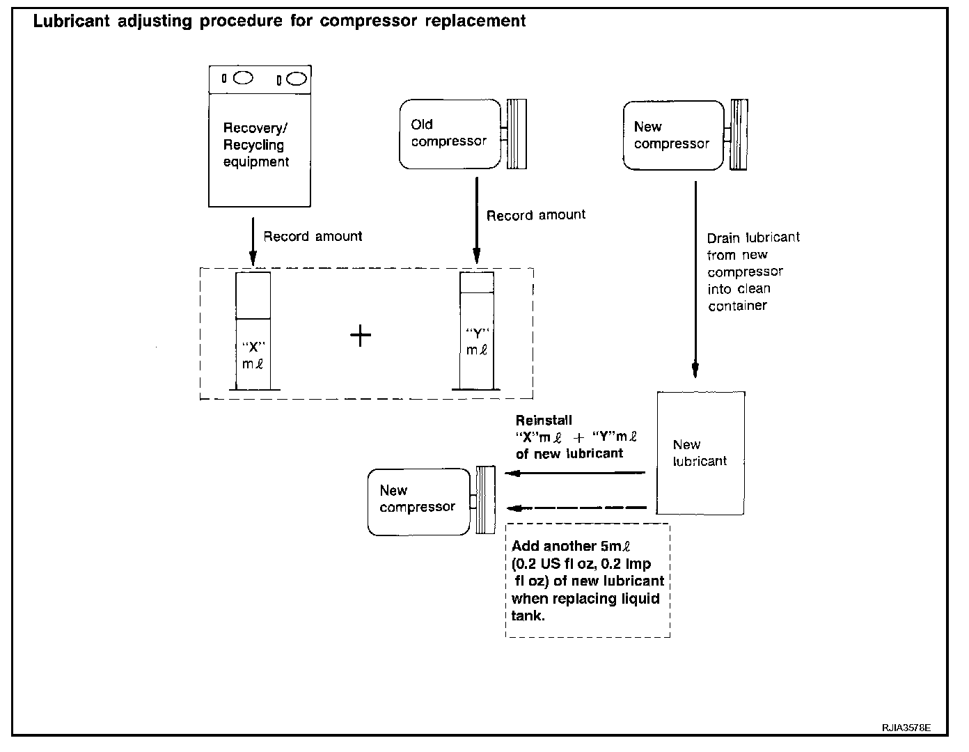 Do not add this 5 ml (0.2 US fl oz., 0.2 Imp fl oz.) of lubricant when replaces the compressor only.