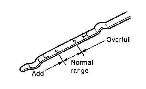 2. Insert oil level gauge and make sure the engine oil level is within the range shown in the figure.