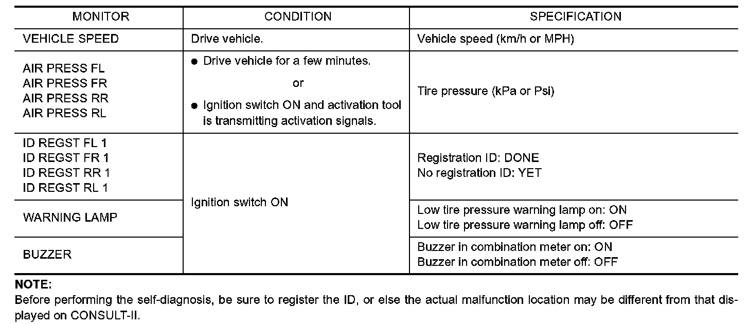 NOTE: When malfunction is detected, CONSULT-II performs REAL-TIME DIAGNOSIS. Also, any malfunction detected while in this mode will be displayed at real time.