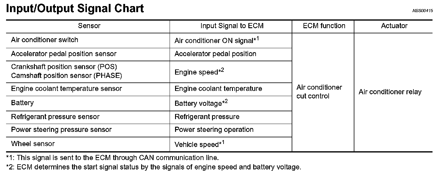 AIR CONDITIONING CUT CONTROLInput/Output Signal Chart