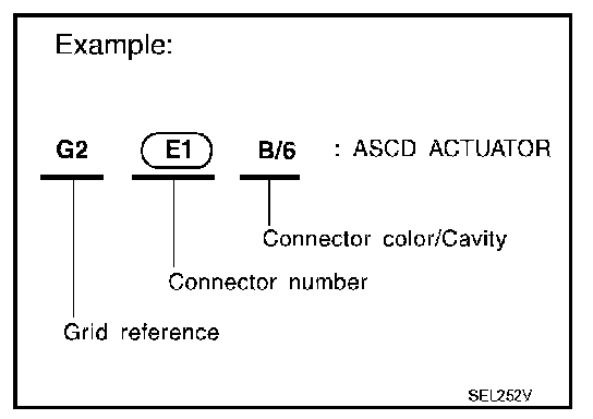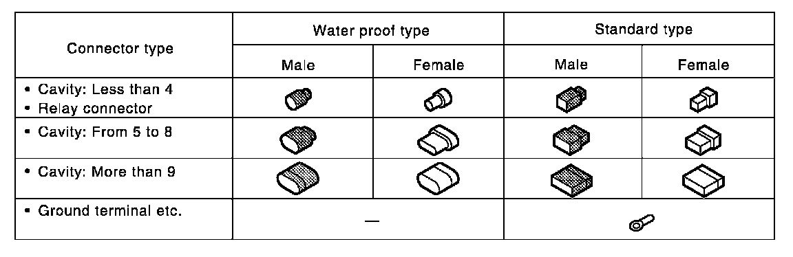 Main symbols of connector (in Harness Layout) are indicated in the table.