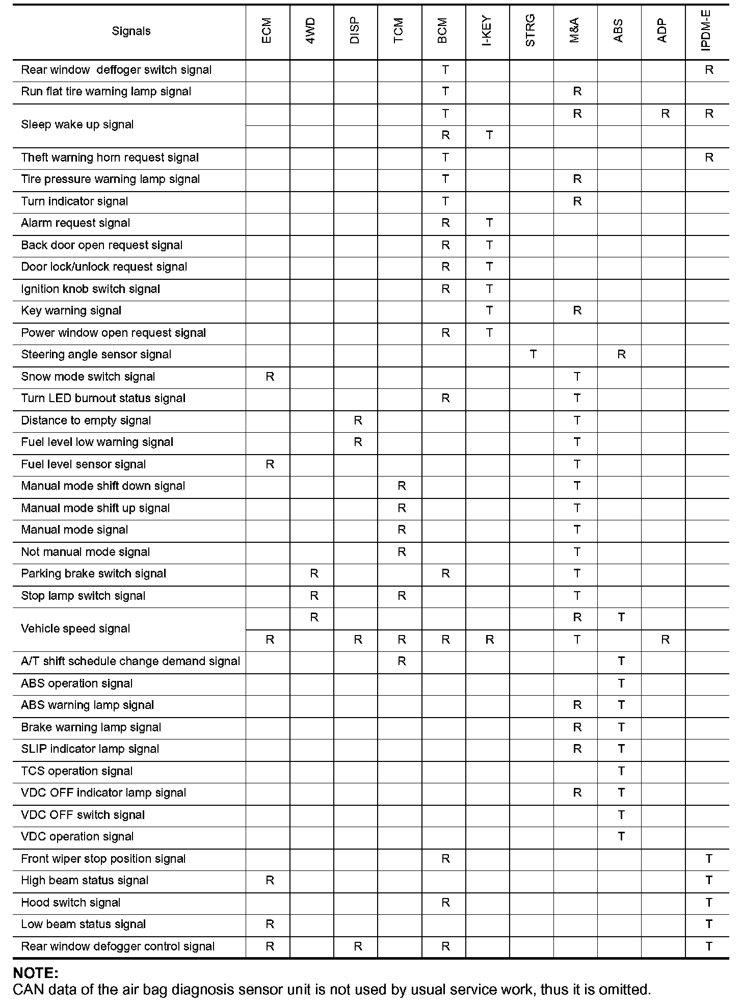 Refer to LAN-15, "How to Use CAN Communication Signal Chart" for how to use CAN communication signal chart.