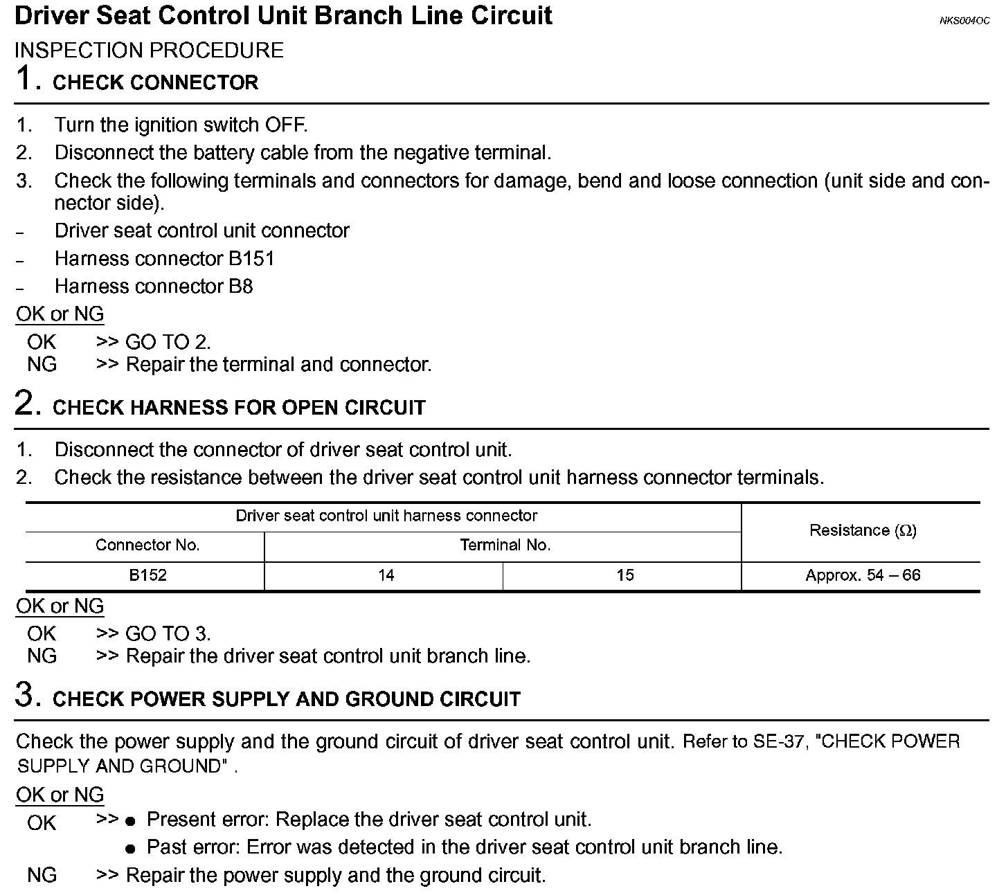 Driver Seat Control Unit Branch Line Circuit
