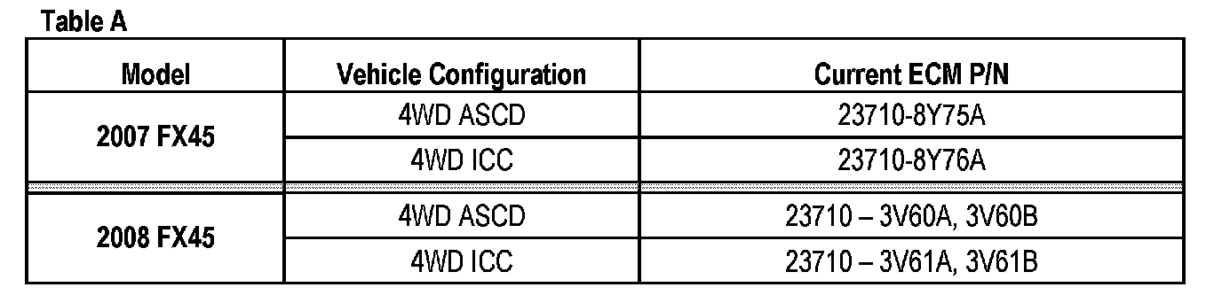 B. Compare the Part Number you wrote down to the numbers in the Current ECM P/N column in Table A above.