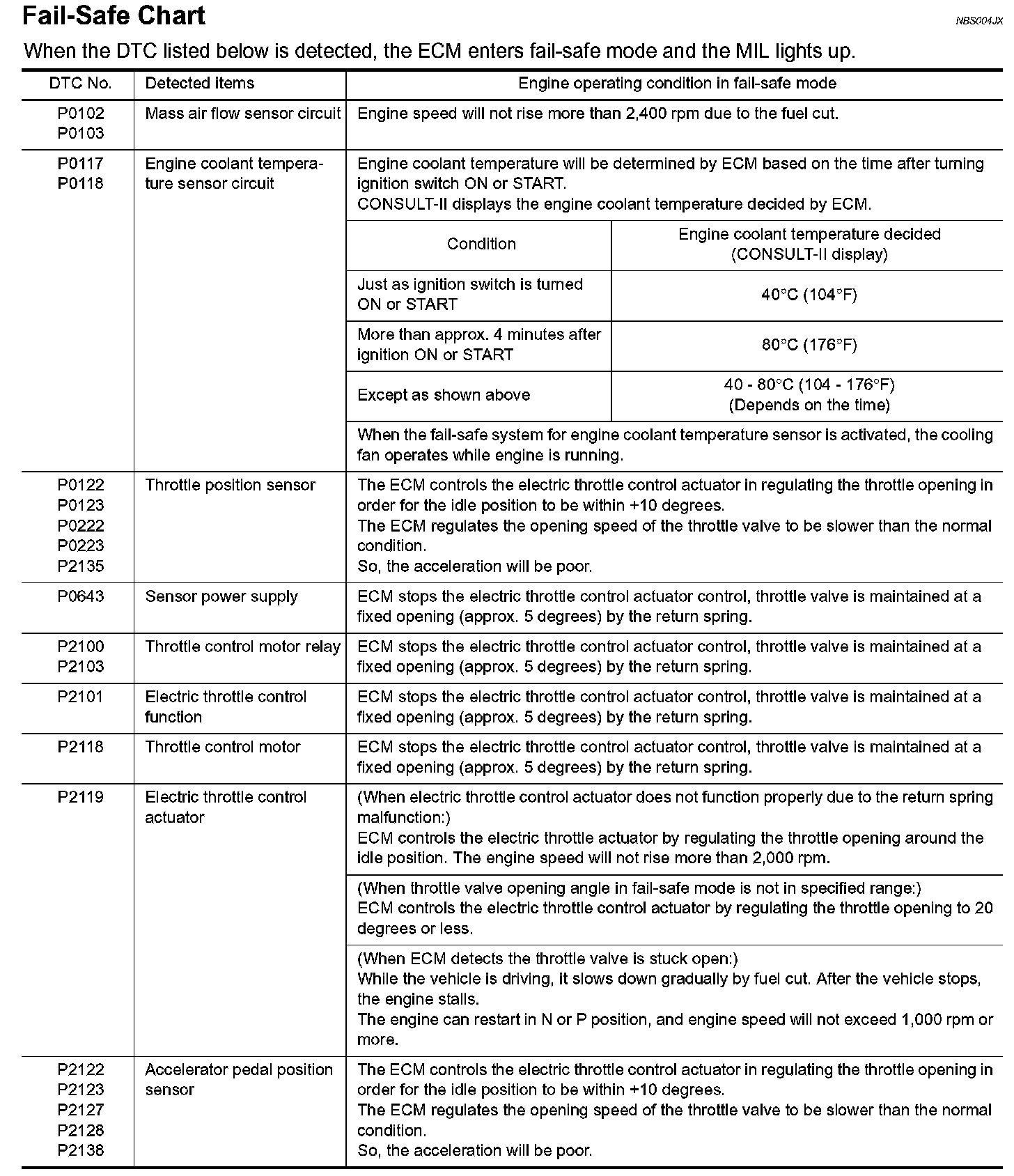 Therefore, when electrical controlled throttle and part of ECM related diagnoses are continuously detected as NG for 5 trips, ECM warns the driver that engine control system malfunctions and MIL circuit is open by means of operating fail-safe function.