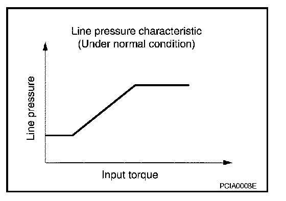 LINE PRESSURE CONTROL IS BASED ON THE TCM LINE PRESSURE CHARACTERISTIC PATTERN