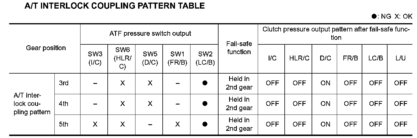 A/T INTERLOCK COUPLING PATTERN TABLE: