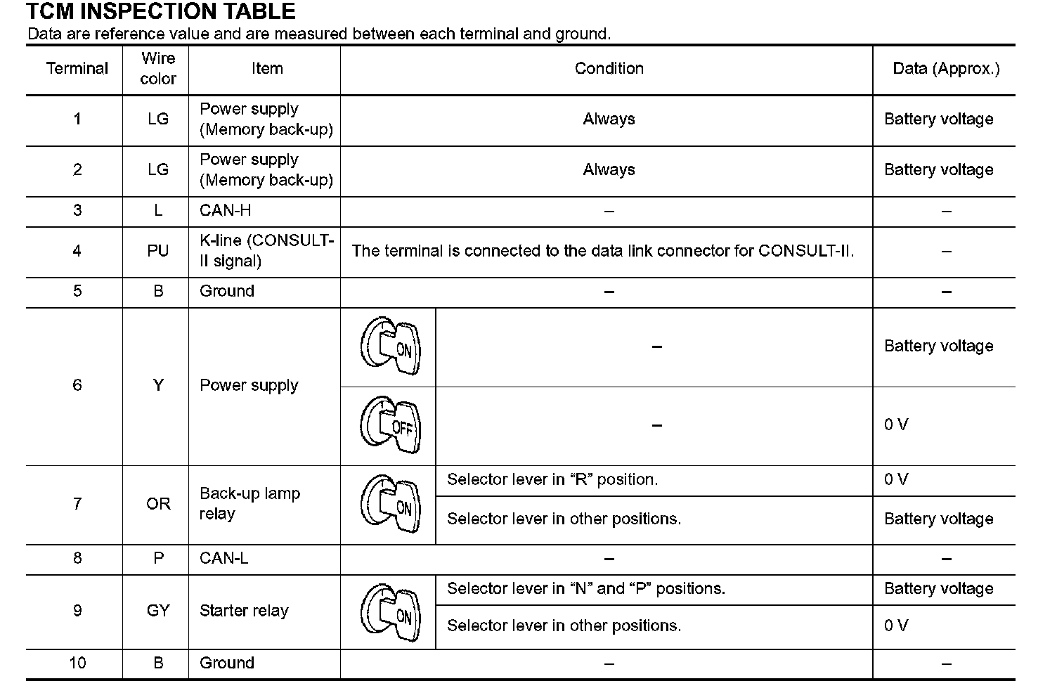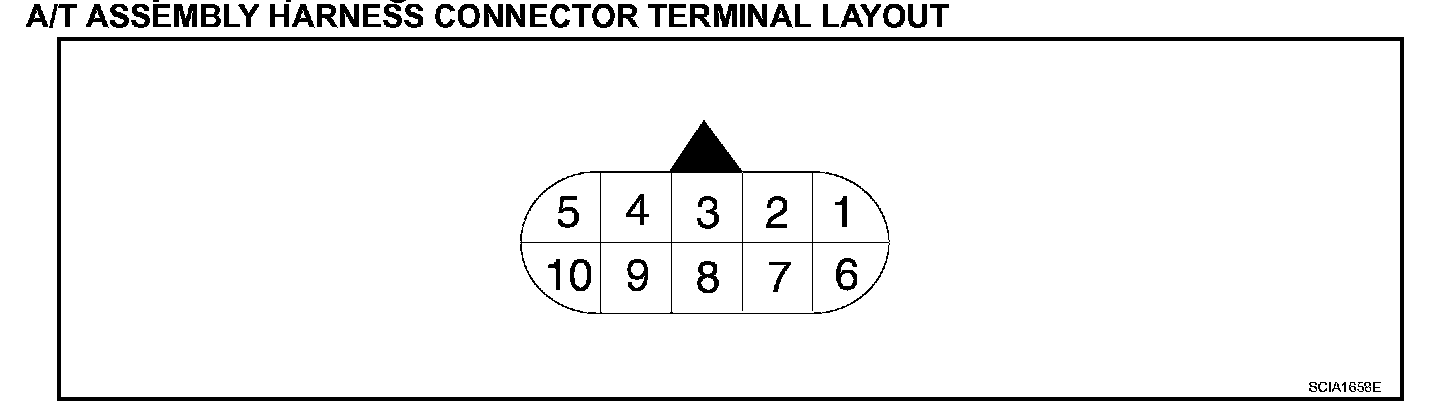 A/T ASSEMBLY HARNESS CONNECTOR TERMINAL LAYOUT: