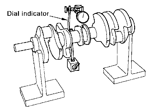 ^ While rotating crankshaft, read the movement of the pointer on dial indicator. (Total indicator reading)