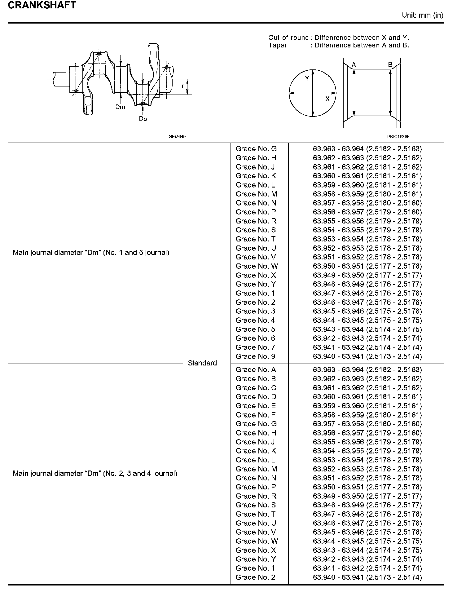 ^ If corrected, measure the bearing oil clearance of the corrected main journal and/or pin journal. Then select the main bearing and/or connecting rod bearing.