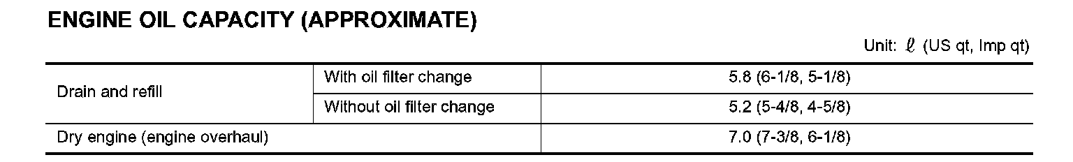 ENGINE OIL CAPACITY (APPROXIMATE)
