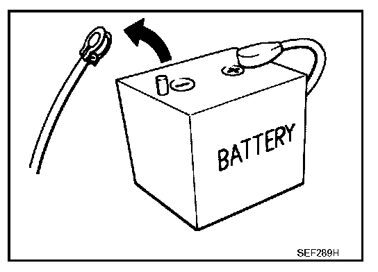 - Before removing parts, turn ignition switch OFF and then disconnect battery ground cable.